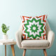 Este design único apresenta um padrão geométrico de formas vermelhas e verdes num fundo branco e é impresso em ambos os lados dos travesseiros. Algumas das formas parecem padrões de estrelas. É um sotaque excelente para o Natal.