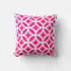 O padrão geométrico dos círculos de bloqueio rosa quente ao ar livre travesseiro. Feito nos EUA. travesseiros de jardim ou pátio resistentes a UV e mofo com designs modernos em cores brilhantes de verão. Disponível em quadrados de 16 ou 20 polegadas e 13 por 21 tamanhos retangulares. Inserir incluído. (Disponível também como travesseiro decorativo de sofá ou sofá, basta selecionar algodão ou poliéster na guia Tecido).