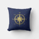 Travesseiros de casamento náuticos azuis com bússola dourada