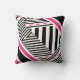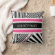 Personalize este travesseiro quadrado de padrão geométrico preto-e-branco com faixas rosa-quente adicionando seu nome. Esta design de menina moderna certamente capta o tipo certo de atenção.