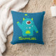 Almofada Três crianças alienígenas azuis e verdes travessei