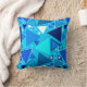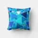 Mosaico geométrico moderno do meio século de triângulos esboçados nas máscaras cobalto, marinho, cerulean e azul-céu em um travesseiro decorativo médio do fundo do azul cerulean
