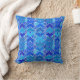 Travesseiro decorativo em uma tomada contemporânea de inspiração africana sobre um impressão têxtil tribal, renderizado em textura batik tingida - tons de azul cobalto, azul ceruliano e azul turquesa, acentuados com branco