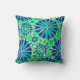 Travesseiro decorativo em um moderno tribal/étnico impressão de rodas e triângulos aninhados de mandala, com uma sensação tropical - tons de azul profundo de cobalto, turquesa, azul-cerulano, aqua, verde-jade e chartreuse, acentuados com branco