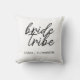 Simples, moderno e na moda, "Tribo de Noiva" cita travesseiro com letra de script em preto e branco em estilo de tendência. Os nomes podem ser personalizados com nomes do seu partido noivo. Você pode usá-lo para a noiva, madrinhas, floreiras ou Mãe da Noiva. Os acessórios coordenadores para a noiva da equipe funcionam bem para uma proposta de festa noiva, a chá de panela, a festa de solteira, o janto de ensaio, a manhã do casamento, ou no dia seguinte ao brunch do casamento. Faz um presente personalizado pensativo para a festa noiva.