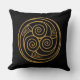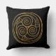Dramático preto e ouro intrincam tripla mandala celta do nó. Espirais eternos e nós de trindade em ouro sobre fundo preto