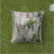 ESTE TRAVESSEIRO DECORATIVO EXTERIOR APRESENTA UMA VISÃO PRÓXIMA DE UM TRUNK DE ÁRVORE INTERESSANTE QUE TEM BURACOS DE NÓS COM A MAIOR CULTURA DELES E UM BELO PINCO E LATIDO TEXTUADO DE CINZA COR.