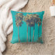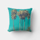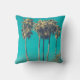 Um travesseiro com uma bela fotografia. Palmeiras altas com troncos longos e finos em frente a um lindo céu verde. Esquema de cor retrorativa. Relaxando e relaxando.