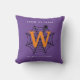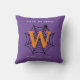 Truque de Aranha Halloween ou Travesseiro decorativo Monograma de Tratamento com fundo roxo e inicial laranja. Feliz Dia das Bruxas! Celebre a noite mais assustadora do ano com essa teia de aranha, aranha e monograma inicial de design em preto, branco e laranja. Com o texto "Trick or Tratat" que pode ser alterado para a sua citação desejada. Texto pronto para personalizar com seu nome e Inicial.