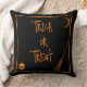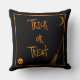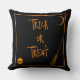 Um design de laranja e gótico preto minimalista com os símbolos assombrosos do Halloween, uma lua crescente, um crânio e uma vassoura de bruxa. Para aquele truque especial de Halloween ou presente para o Halloween. Entra no espírito assustador com o nosso truque de Halloween ou o travesseiro decorativo de Tratar! Este presente festivo é perfeito para festas de Halloween.