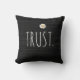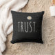 Texto branco "TRUST" com margarida sobre fundo de madeira preta. O padrão de texto e fundo pode ser alterado.