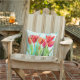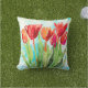 Decorre o seu espaço de vida ao ar livre com este travesseiro decorativo de jardim com tulipas vermelhas modernas de aqua e fundo branco. Excelente para Páscoa e decoração de primavera que durará durante o verão. Projetado por © Tim Coffey.