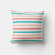 Um travesseiro decorativo listrado com um típico rosa-coral multicolorido, azul-turquesa-aqua e padrão de listras de pêssego pastel. Adicione uma aparência de pré-disquete a qualquer sala com este travesseiro moderno.