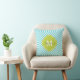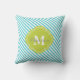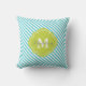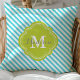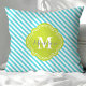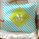 Almofada Decorativa Turquesa e Listras Verdes Monogramada da Moda. Apresentando uma moldura de monograma em trevofoi fofo e elegante. Clique em "personalizar" para personalizar com seu próprio nome e iniciais.