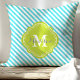 Almofada Turquesa e Listras Verdes Monograma