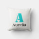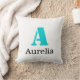 Almofada Turquesa Elegante Inicial Nome Preto | Moderno