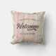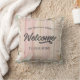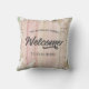 prancha rústica de madeira rosa com borda floral e nota de boas-vindas personalizada com monograma familiar