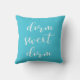 Este travesseiro à moda, brilhante diz do "o dormitório doce dormitório" na tipografia moderna na turquesa e no branco. O travesseiro é reversível assim que você pode escolher qualquer fósforos sua decoração o melhor!