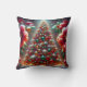 This colorful Christmas throw pillow has two different Christmas tree scenes, one for each side.