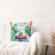 Este é um travesseiro decorativo original da Habatour Creations, decorado com uma ilustração artística autêntica, com um casal, num barco no meio de um lago, cercado por flores e corações voadores Direitos autorais de @Habatour Creations Copy ou use sem permissão é ilegal