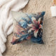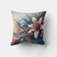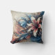 Um design floral vibrante apresenta um lírio rodeado por padrões intrincados e giratórios, azuis e cor-de-rosa, criando um efeito visual cativante.