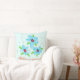 travesseiro na moda com design floral azul reversível. O texto inspiracional acredita em si mesmo pode ser personalizado, ou o texto é removível. O fundo azul do bebê pode ser alterado para qualquer cor.