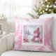 Almofada Unique Pink Snowman Christmas Scene Kids Holiday
