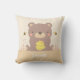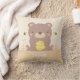 Um travesseiro decorativo com um urso bonito do bebê do marrom da floresta para manter a uma empresa pequena! O urso está aferrando-se a uma colmeia do mel e as abelhas estão zumbindo em torno dela que mantem um olho observador. Plantas frondosas no fundo. Personalize com o nome do miúdo para fazer a isto uma parte especial da decoração da sala para o pouco seu quarto.