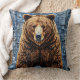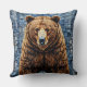 Arte vibrante que retrata um urso com um rico casaco de pelo texturizado, colocado contra um fundo de retalhos com tons azuis e cinzas. O urso permanece imponente e realista, capturando a atenção com suas características realistas.