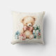 Um travesseiro com uma bela ilustração com um ursinho de pelúcia estilo vitoriano. Vestindo um arco vermelho rico. Desenhado em um estilo vintage bonito e antigo. Presentes de Natal pastel vermelho e azul rodeados por este urso de coração quente.