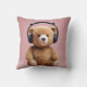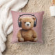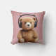 Urso-peludo-marrom-bonito vestindo fones de ouvido isolados sobre fundo rosa.