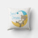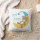 Uma doce escolha de travesseiro para o berçário de bebês, esta design apresenta um ursinho de pelúcia bonito descansando sobre uma lua crescente em um chapéu azul e o texto "Sonhos Doce". Este travesseiro também está disponível em rosa.