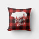 Excelente além do decor do Partido Feriado ou durante todo o ano na cabana de madeira, este travesseiro decorativo corresponde aos nossos outros convites para férias de maré gingham e outros acessórios. A design apresenta um padrão de flanela vermelho e preto listrado atrás de um urso branco com árvores verdes e as palavras "urso papa" na frente. A parte de trás apresenta o mesmo padrão de xadrez com três árvores brancas na parte de trás.