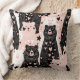 Uma almofada de lançamento com padrão contínuo encantador com ursos gorduchos adoráveis em tons neutros e brancos, colocados contra um fundo rosa suave com bolinhas espalhadas. Essa ilustração divertida e adequada para crianças é perfeita para um espaço temático de floresta suave. Sua paleta pastel aconchegante e estilo simples desenhado à mão a tornam ideal para visuais doces e confortantes para crianças e bebês.