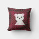 Um desenho animado moderno de ursos polares em Travesseiro decorativo de padrão de diamante preto e vermelho. Os diamantes vermelhos têm formas de pirâmide vistas de cima.