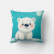 Urso polar caricatural sentado em uma pequena camada de gelo. O urso tem um rosto redondo com olhos grandes e expressivos e bochechas rosadas, dando-lhe uma aparência amigável. Seu pelo é retratado em tons de branco e cinza claro, e suas orelhas são redondas e fofas. O fundo é um azul sereno, pontilhado com pequenos flocos de neve brancos e uma grande lua pálida, criando uma atmosfera invernal. O sentimento geral da ilustração é caprichoso e encantador, tornando-a visualmente atraente.