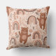 Um travesseiro de lançamento com padrão de berçário contínuo, macio e encantador, em estilo boêmio, apresentando adoráveis ursos de pelúcia marrons em poses divertidas, combinados com arco-íris boho quentes e decorados com corações e detalhes pontilhados. Projetado em um estilo moderno inspirado na Escandinávia, a arte usa tons quentes e suaves de marrom, taupe, bege e rosa beije, definidos contra um fundo neutro claro, criando uma estética neutra em termos de gênero e calmante