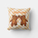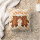 Dois ursos de ursinho marrons que vestem mostrar alaranjado dos arcos do nome personalizado com um fundo de twirls alaranjados. A parte traseira das estrelas do travesseiro um grande levantamento do ursinho é pata a dizer olá!. Este design alaranjado e marrom colorido adicionará um toque especial à sala de um rapaz pequeno. Adicione o nome feito sob encomenda usando o modelo fornecido. Design original pelo estúdio do design do Anura.