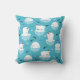 Um travesseiro com um lindo padrão de Natal com ursos polares em pé sobre gelo flutuante vestindo chapéus de anã vermelhos. Pequenos iglos, flocos de neve e peixes cercam esses adoráveis ursos polares se resfriando na água. Fundo azul claro. Design de férias bonitas e caprichosas.