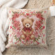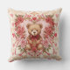 Valentine's ,Teddy Bear,Pink Love Heart and Flowers, Throw Pillow