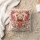 Valentine's ,Teddy Bear,Pink Love Heart and Flowers, Throw pillow
