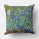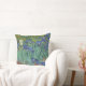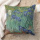 Este belo travesseiro é inspirado pelos irlandeses pintados por Vincent van Gogh em 1889. A imagem apresenta riscas azuis com caules verdes e folhas com pontas pontiagudas plantadas na terra vermelha-marrom.