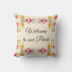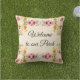 Dê as boas-vindas aos seus convidados em sua varanda com esta linda almofada floral rosa. Esta almofada foi criada a partir de uma bela borda de aquarela pastel. Personalize esta almofada com suas próprias palavras ou compre como mostrado com "Bem-vindo à nossa Varanda" na frente e "Lar doce lar" no verso