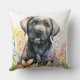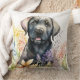Pintura em aquarela esplêndida de um design preto Labrador Retriever Puppy com flores silvestres roxas, vermelhas e amarelas