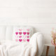 Grandes Corações em muitos desenhos na parte frontal da almofada. Há pequenas versões dos mesmos corações na parte traseira da almofada. Disponível em tamanho de almofada maior. Este design só funciona em almofadas de formato quadrado.