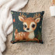 Veado adorável ao estilo cartoon aninhado numa coroa festiva cheia de pinecones e ornamentos, iluminado por luzes brilhantes, criando um feriado agradável e estética de inverno.