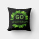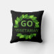 Grite para o mundo, você é um amante de os animais orgulhoso com este travesseiro divertido. O travesseiro apresenta folhas verdes desenhadas à mão, realçando GO VEGETARIAN impressas em letras verdes em negrito, realçadas sobre fundo preto a jato. travesseiros vegetais são perfeitos para * decoração de casa e escritório * presentes - Natal e aniversários * empresas * organizações de resgate e crueldade de animais.