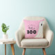 Um fantasma giro para fora da borda do travesseiro. Texto "Peek a BOO" em fontes de estilo manuscrito divertidas. Mostrado em cores rosa, branco e preto, mas todas as cores são editáveis - fundo, elementos de texto e fantasma (basta editar ambos os lados). Personalize o texto curvado com um nome de família, etc. © Kimbellish, LLC