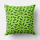 Este travesseiro apresenta um padrão assustador de morcegos pretos voadores com olhos amarelos sobre um fundo verde limão colorido, a decoração perfeita para amantes de morcegos.