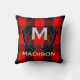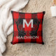 Almofada Verificação vermelha do búfalo do monograma preto